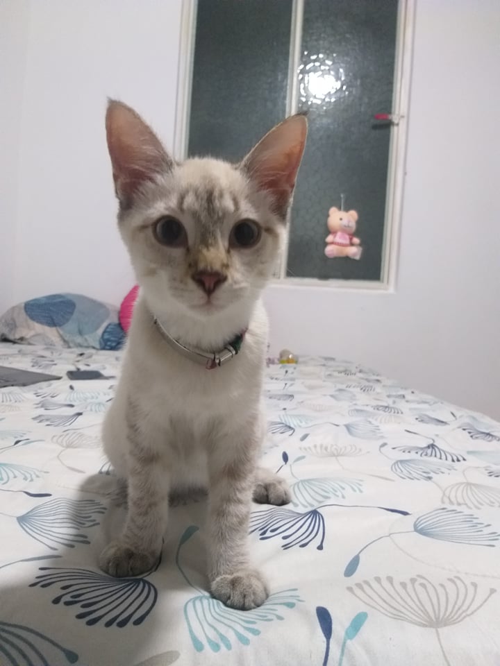 | Gary | ![]() | la historia de esta gata es que llego a la puerta de la casa abndonada sin saber a donde ir y buscando comida ra muy pequeña incluso mas que un celular, estava muy flaco y tenia acaros gracias a que llego a la ouerta correcta el gato esta sano su tratamiento costo dedicacion tiempo y paciencia pero ya esta bien es muy ugueton y consentido poco a poco va creciendo junto a su amo que le da todo lo que necesita y no se despegua de el. | ![]() |